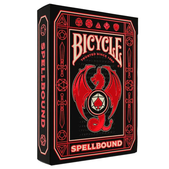 Shimmering, crimson-red foil accents on the tuck make this deck of cards a legendary item. Utilize the Magic, Light, and Evil spell "joker" cards to the Bicycle Spellbound card game! (Instructions included)