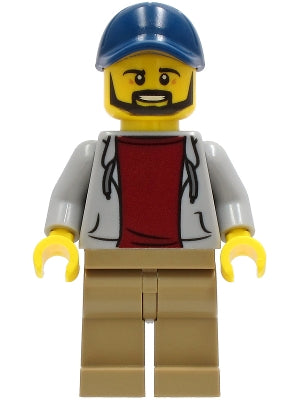 Dad - Light Bluish Gray Hoodie with Dark Red Shirt, Dark Tan Legs, Dark Blue Cap (cty1232)