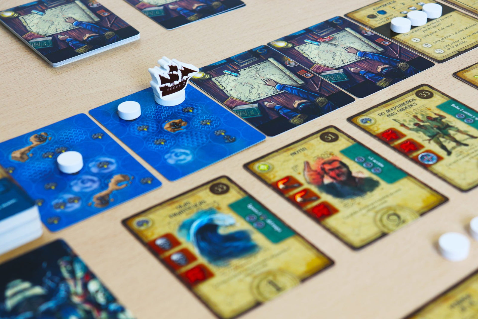 Prepara-te para uma experiência de jogo que te desafia constantemente! Ventos ferozes e tempestades repentinas vão testar as tuas habilidades de liderança, enquanto as cartas na tua mão aumentam o moral e ajudam a navegar a tua tripulação pelos mares traiçoeiros.