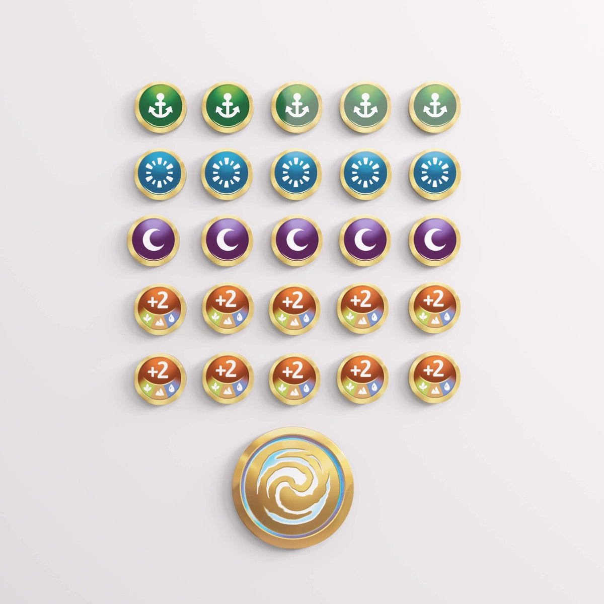 These officially licensed acrylic Premium Markers are designed to enrich gamers’ experience by bringing the Altered® look and feel to the gaming table! One marker set comes with 26 individual pieces, more than in the original game. Including: 1x First Player marker, 5x Anchored marker, 5x Fleeting marker, 5x Asleep marker, and 10x double-sided Boost marker (+1/+2). The Premium Markers are perfect for all enthusiastic players of Altered®.