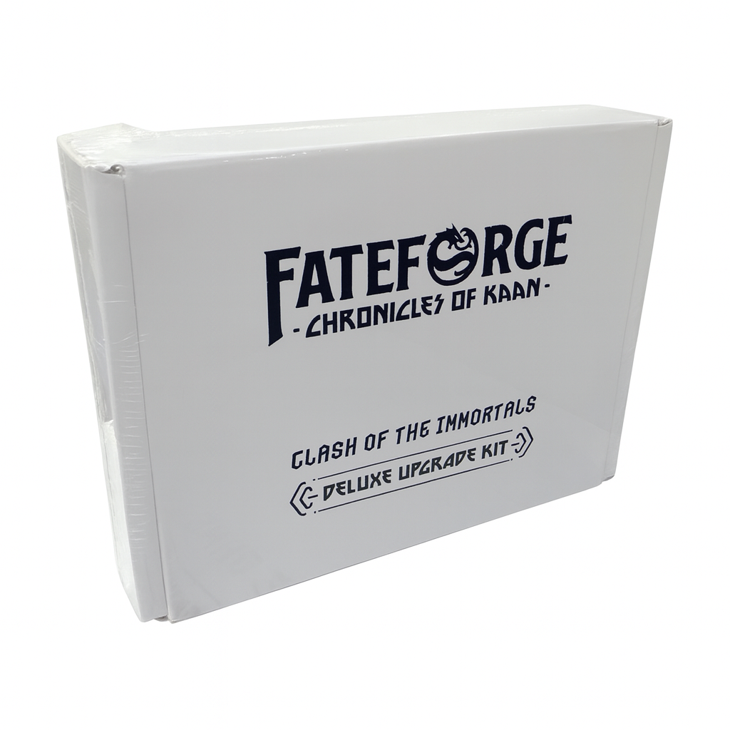 The Chronicles of Kaan Clash of Immortals Deluxe upgrade kit contains upgraded components to replace the retail version, primarily wooden tokens (Boss printed wooden enemy discs, double-sided printed wooden enemy discs and Wooden energy tokens).